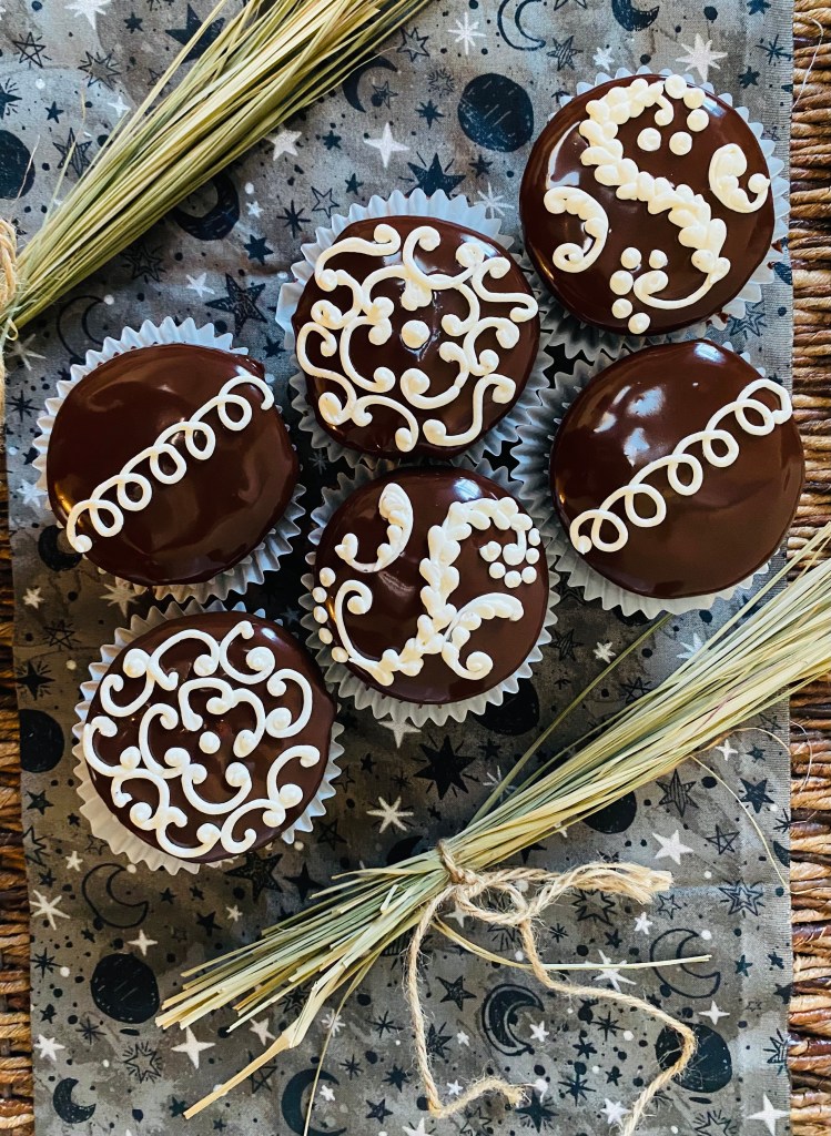 I was shamefully addicted to Hostess Cupcakes growing up. After school, I’d buy them at this sketchy corner store near my house. They were always “fresh”. As an adult, I decided to make my own! They took a lot of work, but they’re my favorite cupcakes to make from scratch. I made them using a chocolate sponge infused with coffee inspired by my favorite dessert cafe The Chocolate Room. The cream filling is Swiss meringue buttercream. Topped with chocolate ganache and decorated with more Swiss meringue buttercream.