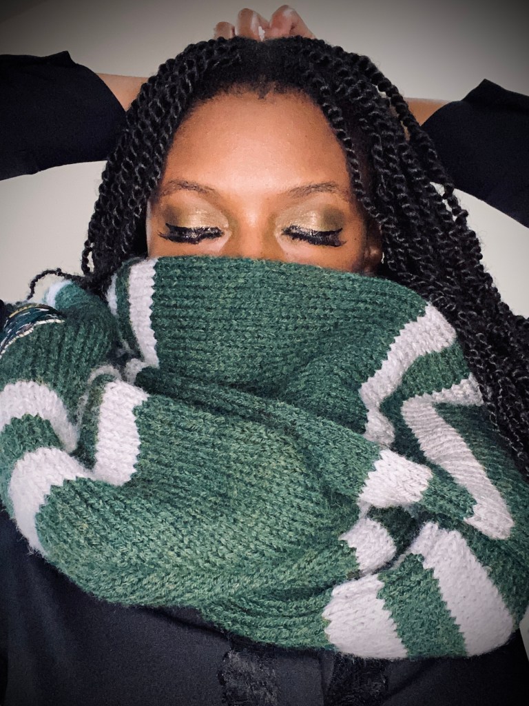 Learning to sew and knit allowed me to take a breather and look into the history of clothing sizes. Clothes used to be custom made to fit an individual. Today, clothes are made in several generic sizes to approximately fit the average body. When I make clothes for myself, I no longer think about the “size” of the finished garment as a static measurement. I now create with the intention of making clothing meant to fit my unique shape while also accommodating weight fluctuations.