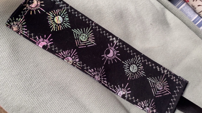 I took the opportunity to play around with some of the lesser used settings on my sewing machine, and use up some embroidery thread that had been sitting around in my stash for over a year. If you are a talented embroiderer, you can embroider the seams together, creating a unique, one of a kind bookmark.