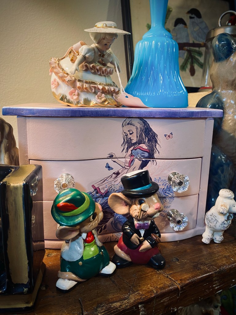 In my neighborhood, there’s a vintage and antique shop—the same one I discovered last year during a local autumn festival. The shop is an old 1910s house converted into an eclectic treasure trove of organized chaos. Very few items have been arranged to actually go together with records mixed with statues, teacups mixed with books, and toys mixed with buttons and vintage canisters.